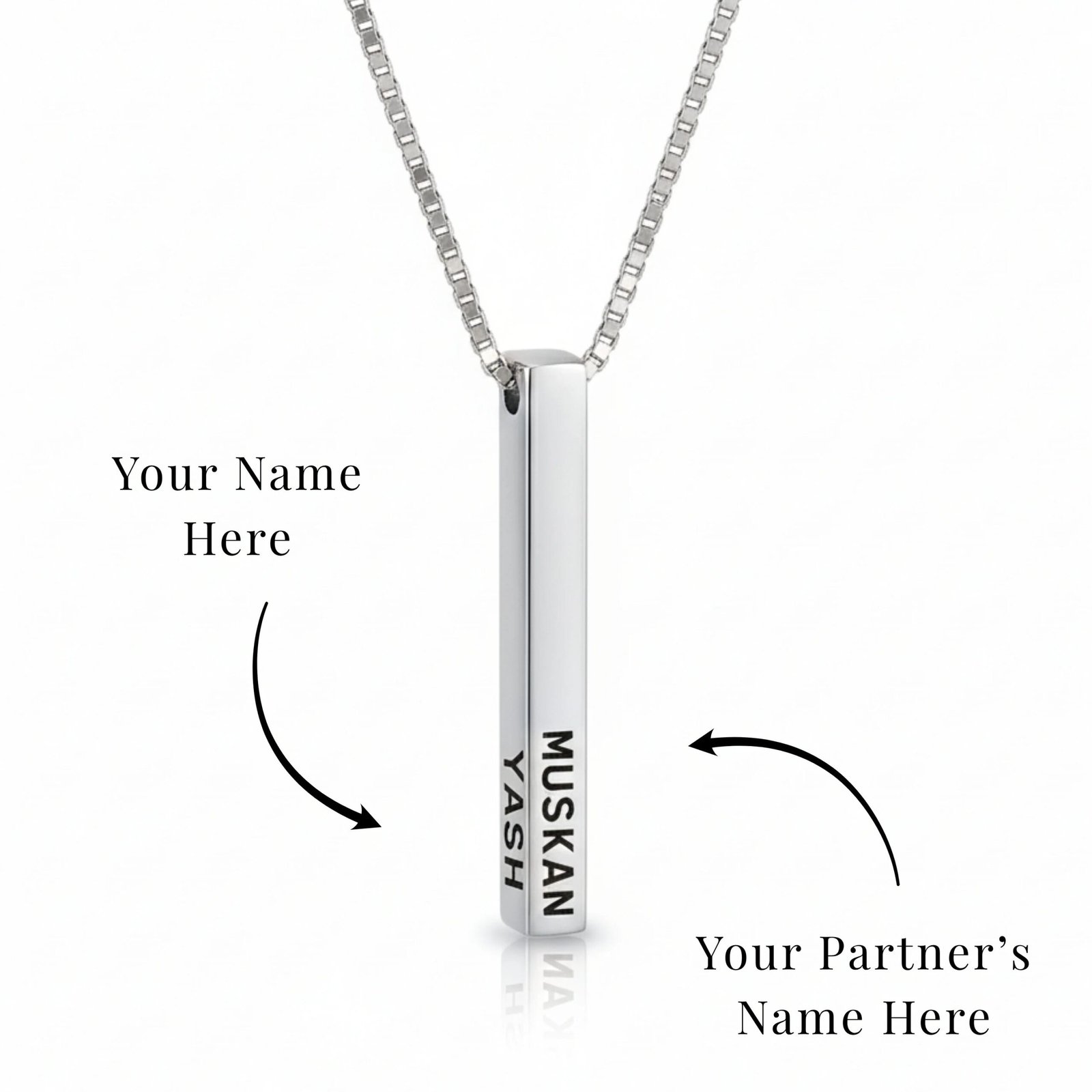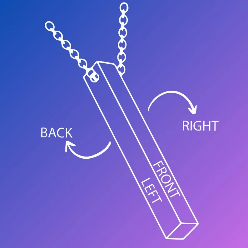 Crafted from high-quality silver, gold, or rose gold, this sleek pendant features a customizable 3D bar that can be engraved with your own special message. Whether it’s a meaningful quote, a cherished name, or a special date, this pendant is the perfect way to express your unique style and keep your loved ones close to your heart.