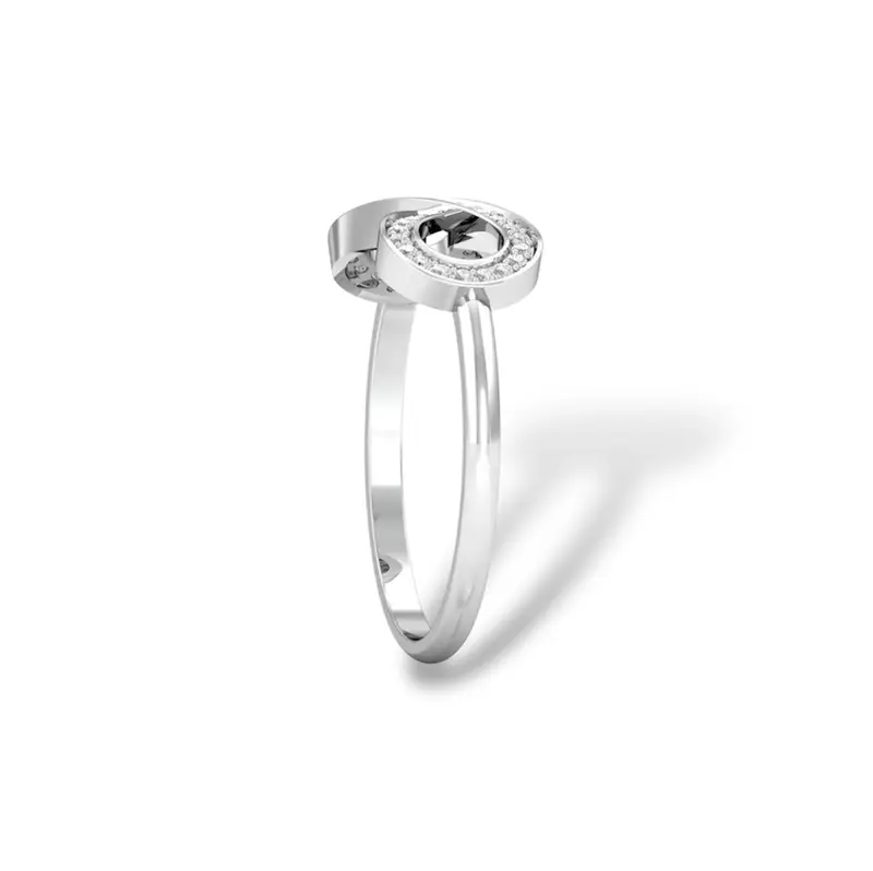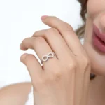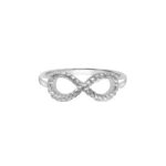 The design features an infinity symbol, encrusted with small sparkling stones, likely cubic zirconia , adding an elegant and timeless touch. The infinity shape represents eternal love, commitment, and continuity, making this ring a meaningful piece for daily wear or special occasions.