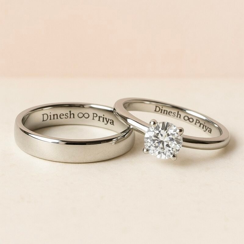 The Silver Infinity Vow Couple Ring is a beautifully crafted piece designed to symbolize an everlasting bond, perfect for couples looking to express their commitment. Made from 92.5 Sterling Silver and enhanced with 18K Gold Plating (with an option for rose gold plating), this ring combines elegance and durability. The design features an infinity-inspired band, adorned with Moissanite Stones that add a sparkling touch, mimicking the brilliance of diamonds.