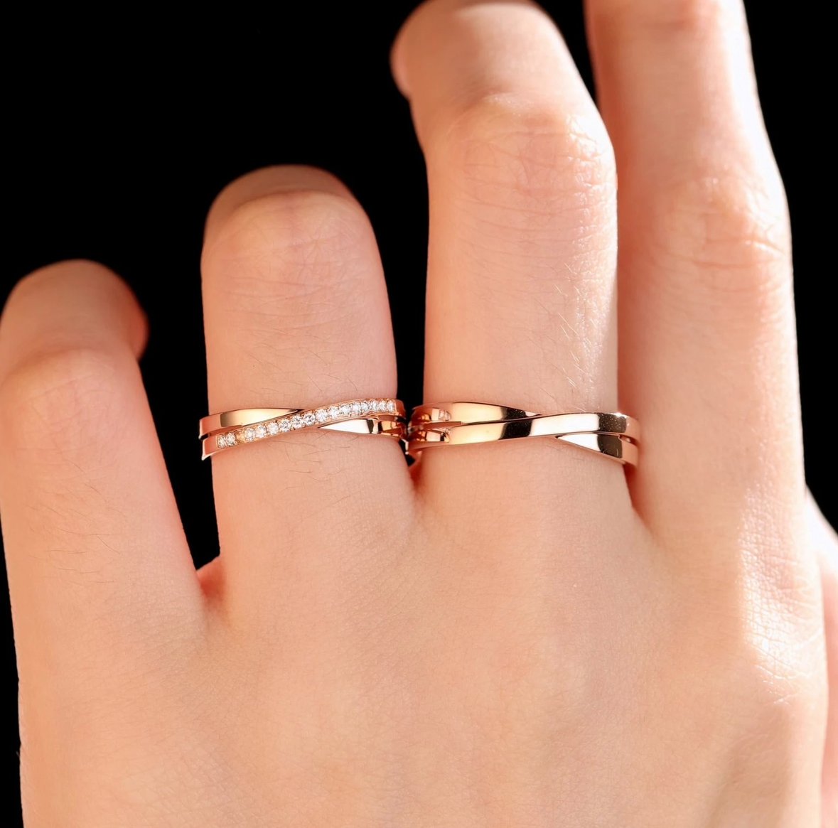 Infinity Vow Couple Ring With Rose Gold Plating
