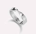 The Mobius ring showcases a front knot style.The intricate knot detail at the forefront not only
