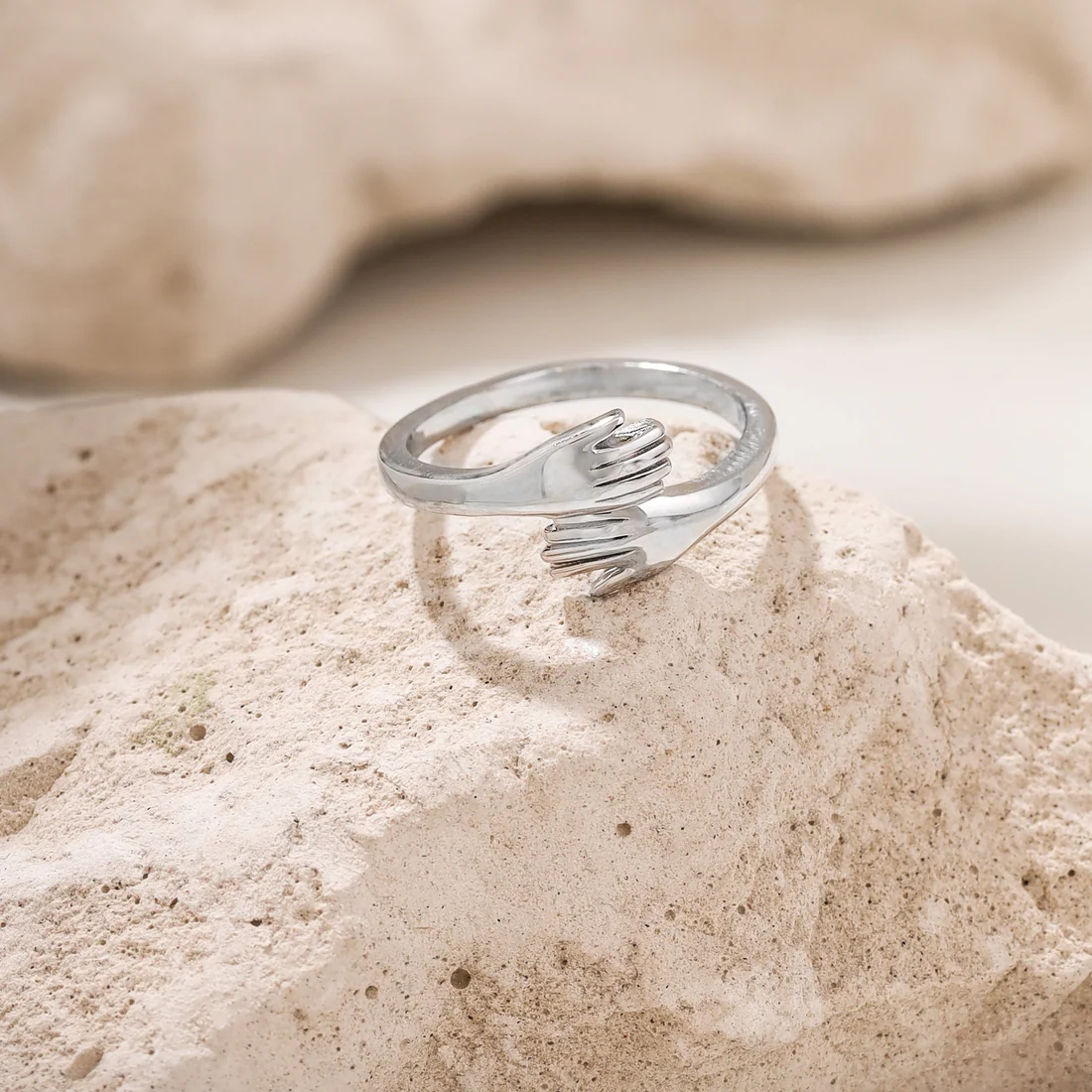 Embrace the warmth of connection with our exquisite Hug Ring, a timeless symbol of love and unity. Crafted from premium gold or silver, this unisex ring features a unique design of two delicately sculpted hands that gently clasp around your finger, creating a heartfelt “hug” that’s both elegant and meaningful. With its smooth, polished finish and luxurious shine, the Hug Ring is a versatile piece perfect for all genders and occasions—whether as a personal keepsake or a thoughtful gift.
