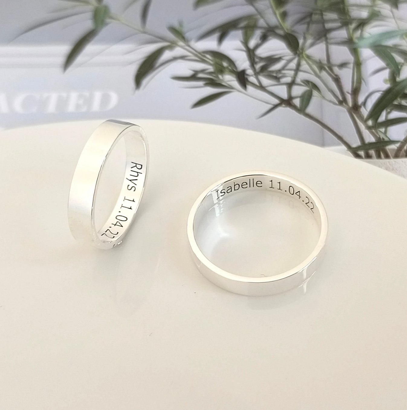 Celebrate your unique story with our Personalized Engraved Unisex Ring, a versatile and meaningful piece for all. Available in elegant silver-plated and luxurious gold-plated finishes, this ring features a custom engraving inside—perfect for dates (e.g., “2.26.23” or “W♥S 20.06”) or special messages. Crafted for comfort and style, it suits any occasion and fits all with adjustable sizing or standard sizes .