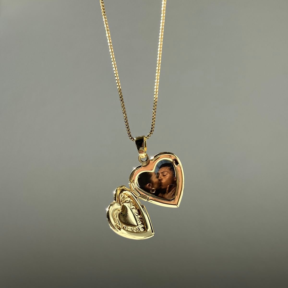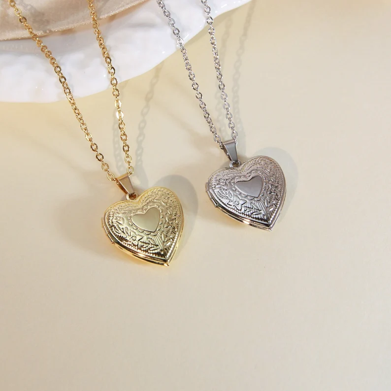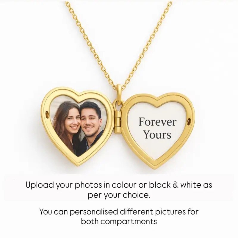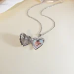• Design: Elegant heart-shaped locket pendant. The locket opens to reveal a secret compartment for pictures.