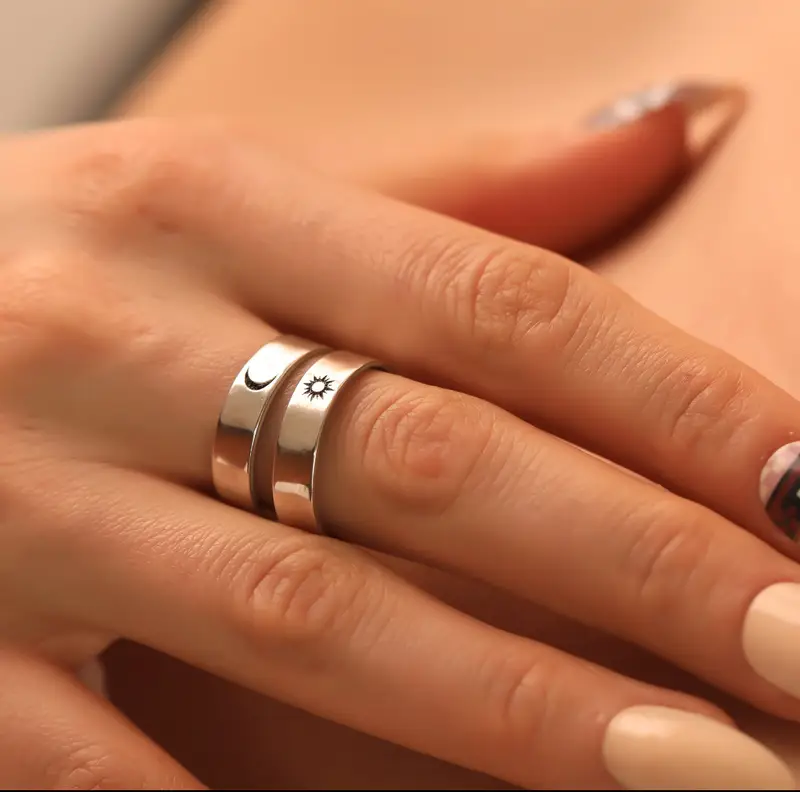This Sun & Moon Couple Ring Set is thoughtfully crafted for two souls who complete each other—just like day meets night. Designed in a sleek silver-plated finish, these rings carry a timeless charm with a modern minimal aesthetic.
