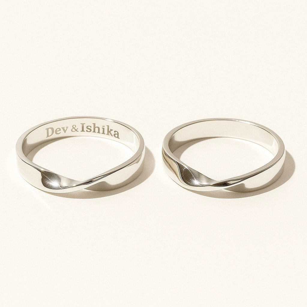 Crafted from 92.5 sterling silver, this hypoallergenic twisted couple ring is designed for lasting comfort and elegance. Perfect for couples, each ring can be personalized with custom engraving to add a unique touch. Celebrate your special bond with this beautifully handcrafted piece, tailored to your style!